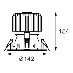 LED Down light luminaire with die-cast Aluminum alloy in white powder coating finish.
