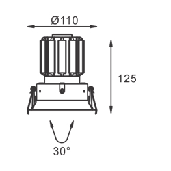 LED Down light luminaire with die-cast Aluminum alloy in white powder coating finish.