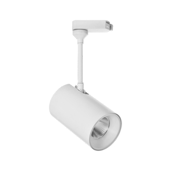 LED Track light luminaire with die-cast Aluminum alloy in white powder coating finish.