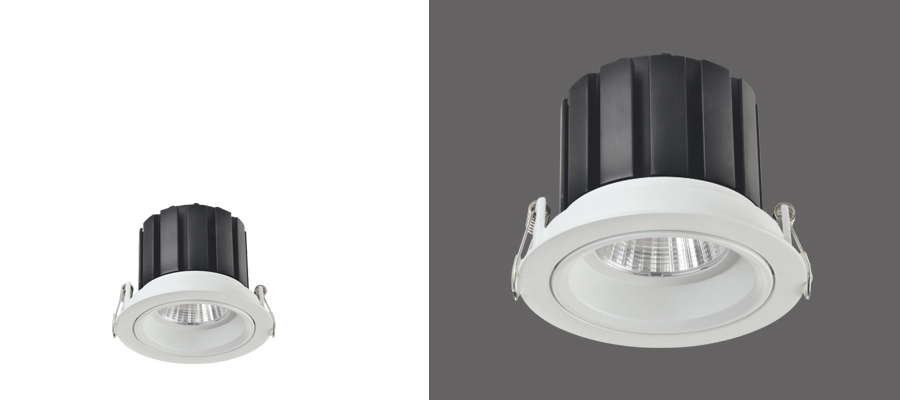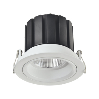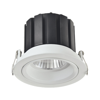 LED Down light luminaire with die-cast Aluminum alloy in white powder coating finish.