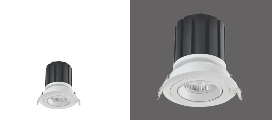 LED Down light luminaire with die-cast Aluminum alloy in white powder coating finish.