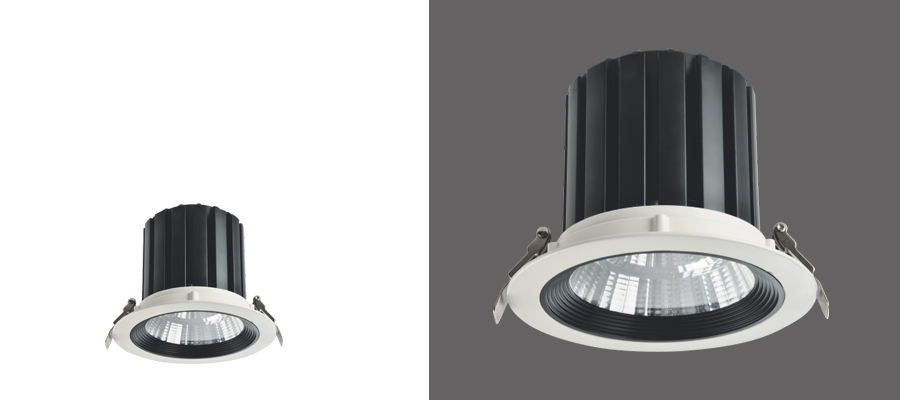 LED Down light luminaire with die-cast Aluminum alloy in white powder coating finish.